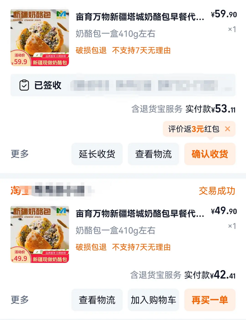 真的很好吃啊,感觉和同事分享的从新疆带回来的奶酪包没差,而且发货地确实是乌鲁木齐。两次价格不一样,好像是因为满减活动的原因。不过我只买过这家,大家也可以试试别家的,奶酪包真的可