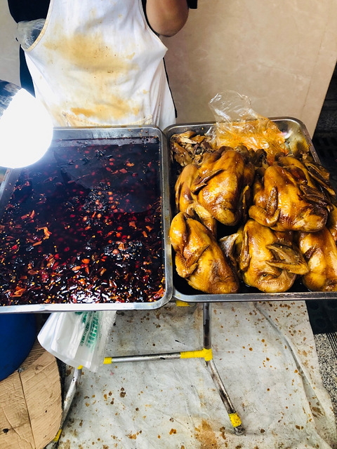 上一次路过,闻到好香,没有买,还后悔了……今天由于碰到了,闻起好香,26一斤,要了一只小的,真的很小……结果孃孃说94块钱[ej=1F602]好贵哦!居然是混起佐料给我称重,感觉被坑了啊