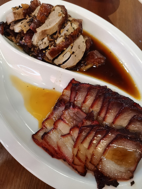 听说是米其林餐厅,性价比很好的粤菜趁着去时代天街烫头发,顺便就去打卡了招牌黑椒烧鸭,肉很瘦但不柴,感觉是酱香味的,黑胡椒再多点就更好了,鸭皮有些地方脆香的还行蜜汁肥叉,点之前还担心会很肥,其实还好,肥瘦相间的,也还可以吃