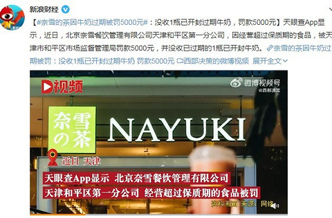 奈雪的茶因牛奶过期被罚5000元:没收1瓶已开封过期牛奶