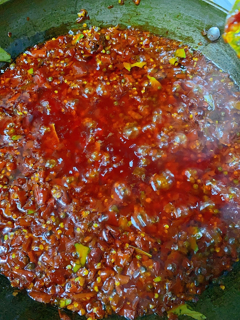 去年十月在滇西观鸟和徒步,行程结束在芒市,我们选择从昆明转机。计划在芒市住两晚,吃点好吃的,略作休整,再飞回来。 我从小喜欢滇中的巍山pa(【火巴】)肉饵丝,骨汤浸泡着软白的饵丝,店家把炖烂的腿肉撕成条,搁在顶上,食客自己放调料,除了油盐酱醋,还有酸菜、葱、香菜、草果面、花椒油、辣油等。早就听说滇西的饵丝不一样,实际一吃,果然更滑爽。从保山、腾冲等地一路行来,印象较深的是保山的烧肉米线,在明火上烤