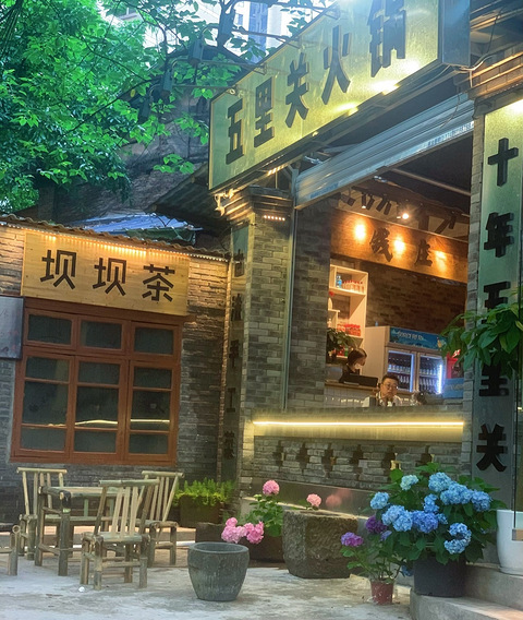 英雄难过美人关,美人难过“五里关”。接娃放学路过这家店,感觉装了几个月的样子,在五里店融景城附近,九街有个单位旁边。喜欢这个地方,因为有棵高高的黄桷树,挺舒服的。终于试营业了,还有8.8折的优惠,环境味道都对得起价格。给人是工业风的感觉,摆着很多个小窗口,有坝坝茶,钱庄,酒庄,小吃摊,甜品站。夏天在黄桷树下乘着凉喝坝坝茶还不错。再往里面走就进厂了火锅工厂,特色菜一目了然。"每次炒料,都是不同的思考