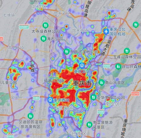 重庆VS成都热力图,人口集中吊打成都!