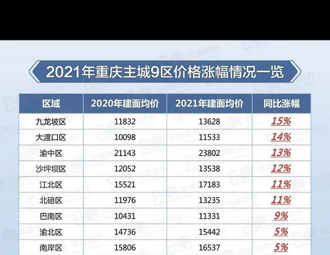 2021年重庆主城各区房价涨幅出炉,最高涨幅15%!