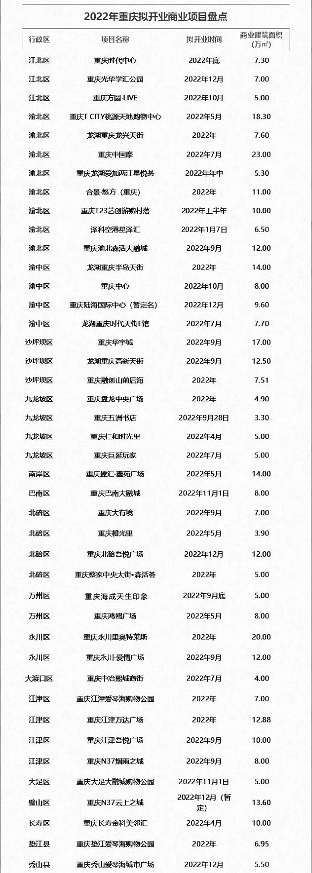 【2022年重庆有43个商业项目开业,泡沫如此严重吗?】 我们都知道重庆的商业一直以来都是供大于求,一直以来都是过剩的,很多新开的商业也就打着促销的,前两天有很多的人过来看热闹,不到半年的时间就凉凉了。 但是万万没有想到,2022年重庆市有43个商业项目即将开业,其中渝北区最多,高达8个商业项目。 说实话,这么多商业项目集中开业,我真的挺担心的,到底有几家商业真正能够做起来,该不会又热闹几天,然后