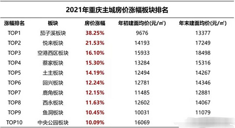 2021年重庆房价涨幅排名,最高上涨38.25%!