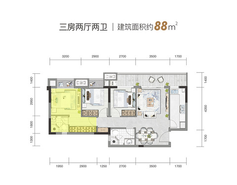 110万左右,小两房或小三房,离轻轨近
