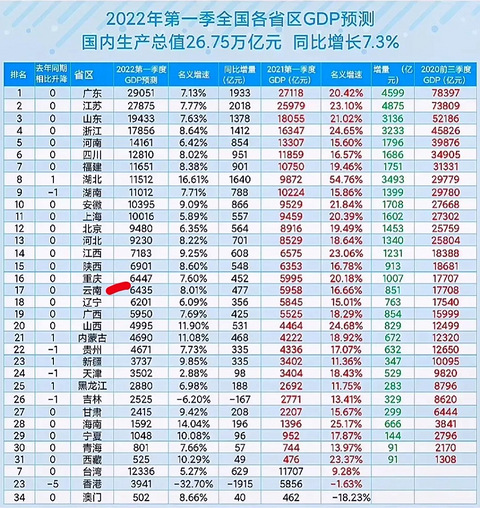 【2022年一季度GDP预测,重庆吊打多个省会城市!】 2021年的第一季度就这样愉快的结束了,那么我们来轻轻松松的预测一下第1季度各个省会城市或者大城市的GDP总量。 很明显重庆这一个城市非常的亮眼,第一季度的GDP就突破了6,000亿元,逼近7,000亿元。 按照这样的总量来看,可以说它调达了很多省会城市,因为好多省份加起来也不过如此而已,更何况仅仅只是一个省会。 值得注意的是,?辽宁省这几年