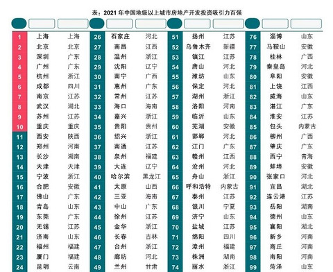 【太牛了!2021年房地产投资吸引力,重庆进入前10强?】 你知道吗?2021年房地产开发投资100强名单已经出炉了。 1.上海;2.北京;3.深圳; 沪京深是21年房开投资吸引力3强,广州、杭州、成都、南京、武汉、苏州、重庆房开投资吸引力入围10强; 所以投资买房的朋友选择城市已经非常明确了,在前十强城市里面选择就可以了,没有必要去其他的城市了。 因为这些城市才具有发展潜力,房地产市场才会增长得