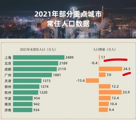 【2021年城市人口结构发生重大变化,重庆去哪里了?】 疫情已经维持三年时间了,希望能够早日清零早日解决,让我们摘下口罩迎接春暖花开,我们真的好怀念不戴口罩的日子啊。 这三年也发生了很多重大的变化,就连城市的人口结构也开始发生变化了,不再和以前一样了,人往高处走,水往低处流,似乎都已经成为过去式了。 你看看,一线城市大洗牌,北上广不再“香”了! 2021年,北京人口净流入-0.4万,上海1.07