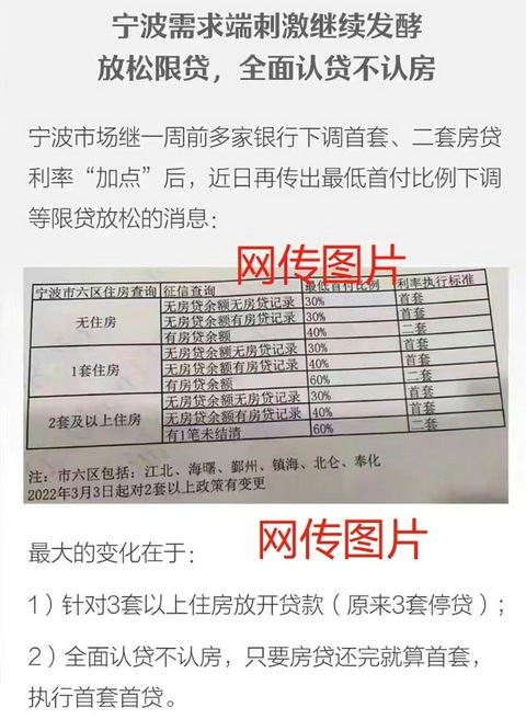 【史无前例!宁波放开三套房贷?楼市要……】 我们都知道我国的房贷政策其实还是比较宽松的,一般情况下第1套房和第2套房都是可以向银行申请意大利的房贷的。 然后再购买第3套房或者4套房或更多套房的时候,就需要全款买房了就不能再申请房贷了,大部分的城市也就差不多。 然而去年楼市特别的低迷,现在为了促进房地产健康平稳,很多城市的政策都变相的放松了。 史无前例,真的是太惊人了,网传“宁波放开三套房贷?” 这