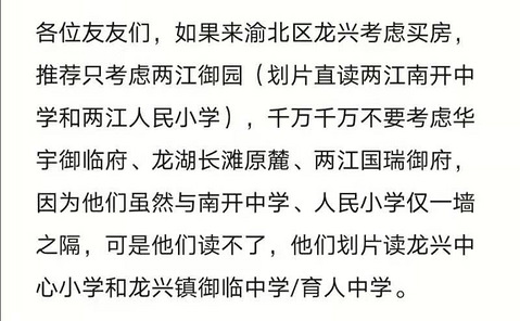 各位要去龙兴买房的,如果不是买御园的话,娃上学的事就交给运气吧