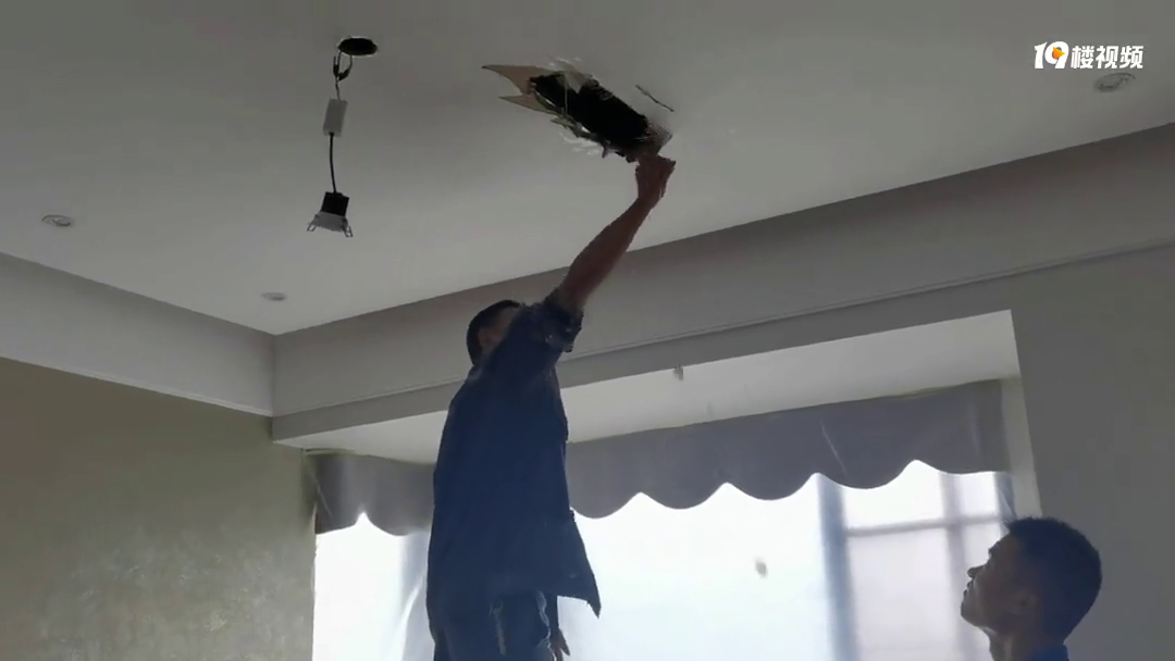 万科新房入住仅10个月,天花板居然哗哗漏水,有1.83米裂缝