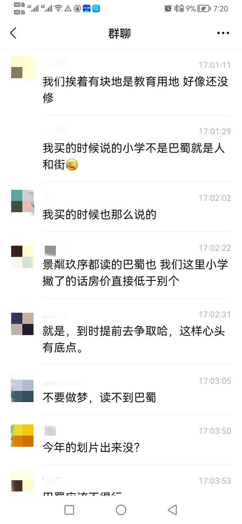 刚我们小区业主建了个群,说是不能读巴蜀小学了,而所谓准备新修的人和街小学还没有动工迹象,云瑶玉壁业主的孩子只能读空港家园公租房小学。那要是这样,这个房价就不值这个价,开发商是不是该退钱。当时楼盘职业顾问说的云瑶玉壁房子要么读旁边新修的人和街小学,如果没修好肯定只有读巴蜀小学。有多少业主是得到这样的虚假宣传,欺骗式引导的,请大家留言。照片是业主群的讨论情况,求证实。