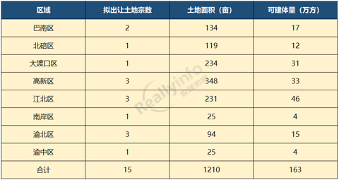 重庆中心城区发布15宗拟出让地块公告!