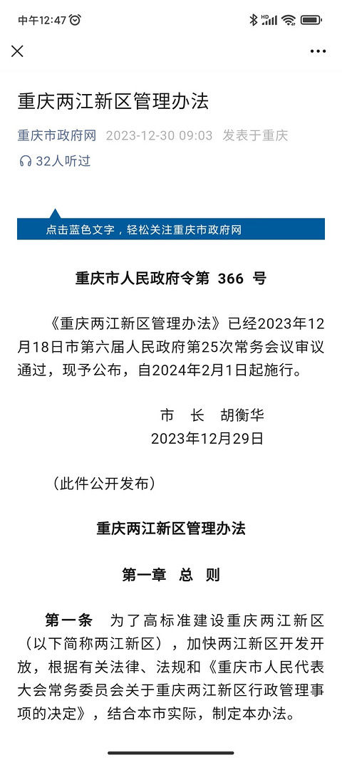 似乎两江新区离正式成区又近一步