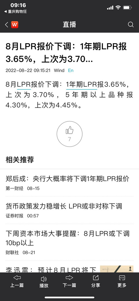 从上周五汇率的变化,我们几乎可以判断这个LPR肯定会下调的,因为7月的数据出来以后,央行就不得不为了。一般来说,全世界的央行都有两大任务: 一、给市场提供流动性,不能让市场缺钱。二、尽力推动M2温和的增长,保持通货膨胀的经济繁荣周期。
