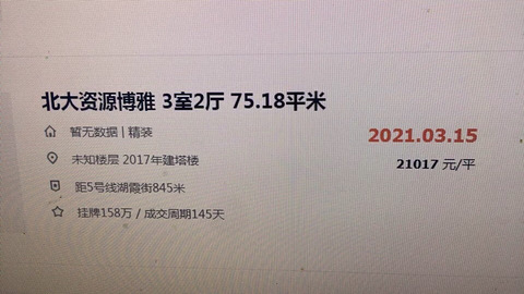 好像突破了北大资源博雅75平最高成交价的天花板了!