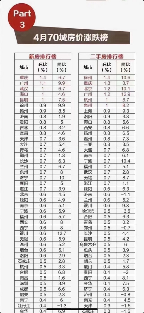 4月新房涨幅排名第一,二手房涨幅排名第二!