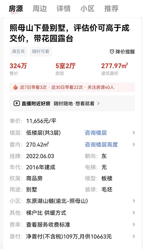 一打开就在推荐这套房,建面1w2不说还带60平花园,看起来怎么就那么不信呢?