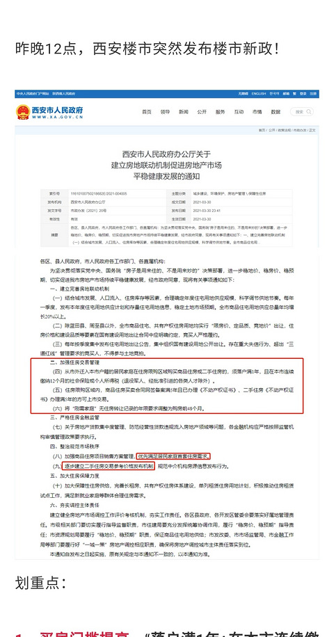 昨晚12点,西安楼市突然发布楼市新政!