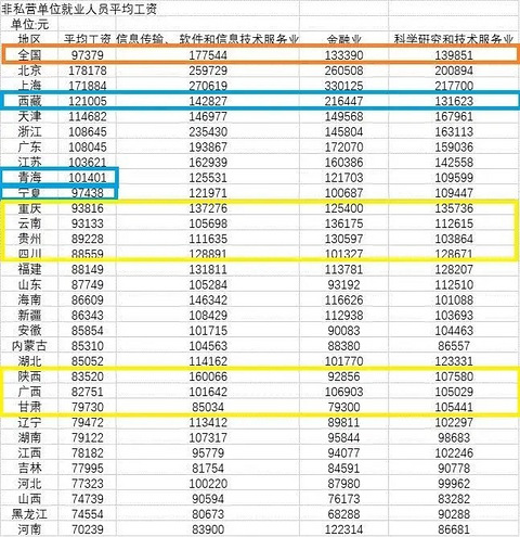 非私营单位平均工资,西藏这个有点高