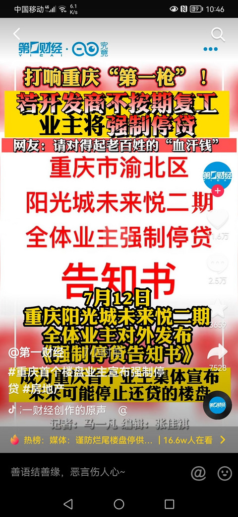 房子烂尾,韭菜集体不还钱,重庆不会有效仿的吧!这个第一财经发这个不能信吧!