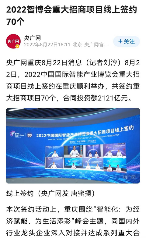 很多公司还是看好重庆 疫情影响加高温下 智博会再签约2千多亿