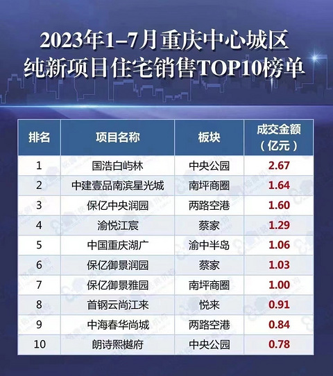 地产界黑马?1-7月重庆中心城区热销楼盘榜单来了