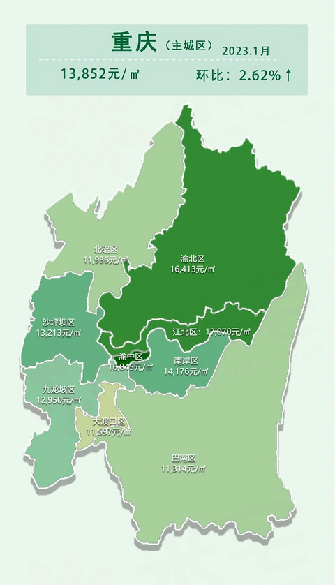 1月重点城市房价地图,重庆大涨