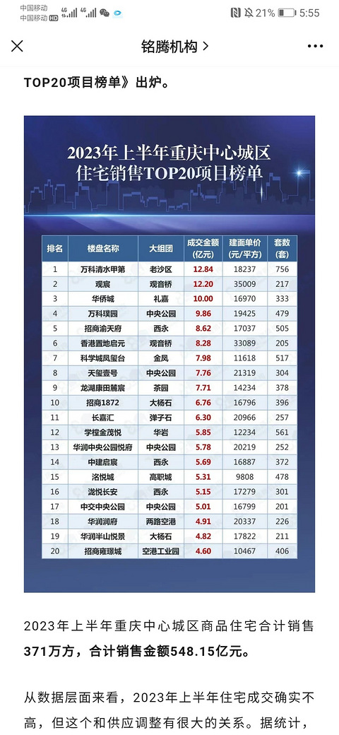 2022年1月重庆住宅top10出炉,原来它们最好卖?