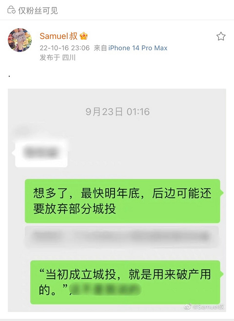 Samuel叔:成都可能放弃部分城投,不排除破产的可能性