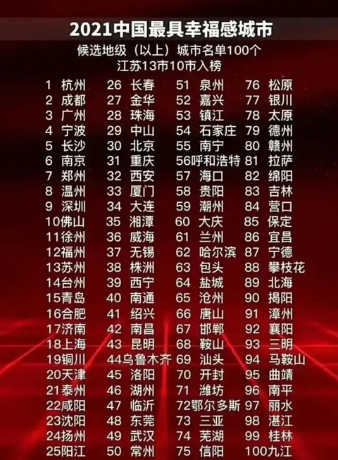 2021年中国最具幸福感城市100强出炉!