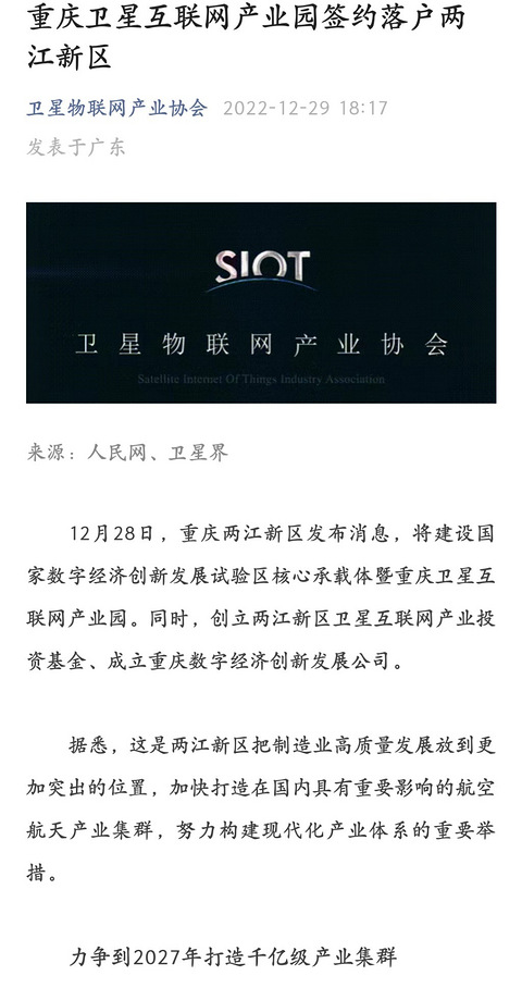重磅!重庆卫星互联网产业园签约落户两江新区