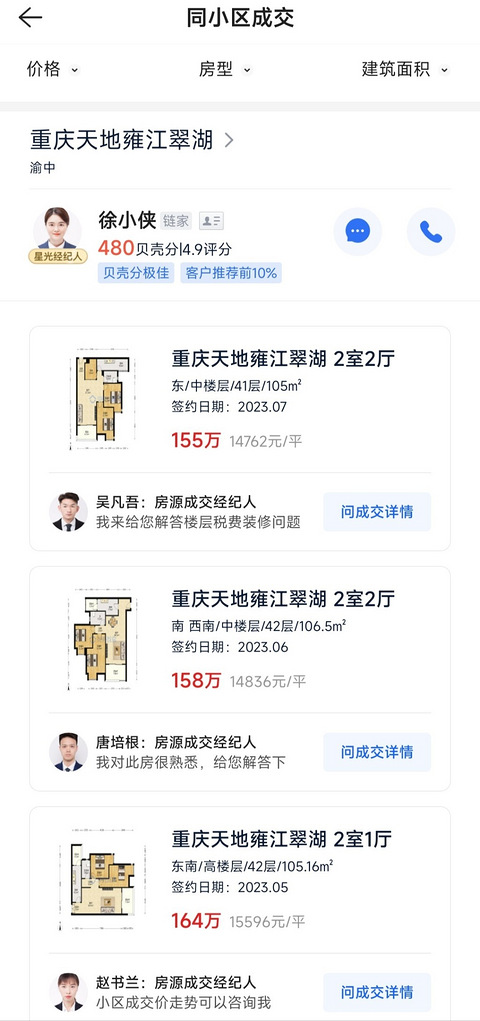 网友留言:你们天天吹的网红楼盘重庆天地我看也并没有逆势上涨?