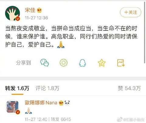 宋佳、欧阳娜娜等一系列杨天真旗下艺人说“演员高危职业。”