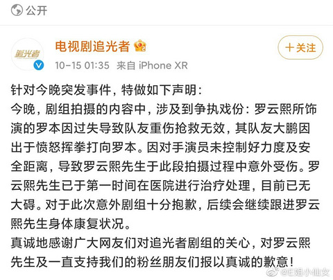 天呐,罗云熙被对戏男演员打伤进医院