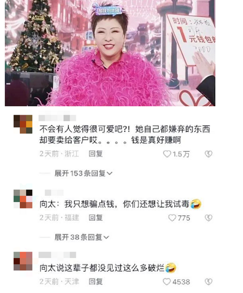 向太大概怎么也想不通,自己奋斗了大半辈子,也算是女强人一枚,结果现在出来直播带个货,却被人喷成了筛子。