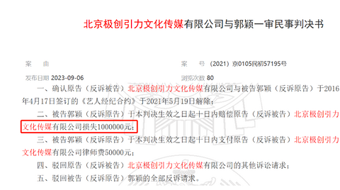 昨天有起解约官司悄悄出了结果。前“火箭少女101”的成员yamy(原名郭颖)因解约,被前经纪公司极创引力索赔1574万,最后一审判决赔偿100万。 转自东邪西媚