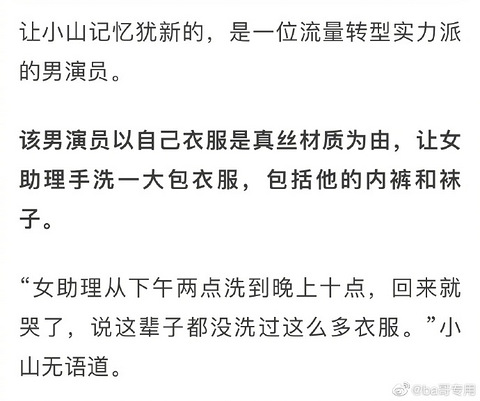 搜狐采访了业内的助理工作人员,他们曝光了几位对助理颐指气使的明星,你们能猜到是谁吗? 流量转型实力派的男星,让女助理帮忙洗内裤和袜子