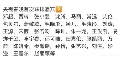 快要过年了,春晚备受关注,近日,网上流传出一则名单,邓超、贾玲、张小斐、沈腾、马丽都在其中,引起了广大网友激烈的讨论。