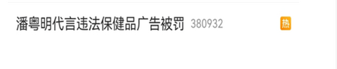 今早一睁眼。 #潘粤明代言违法保健品广告被罚#热搜第一。