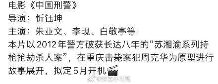 网传《中国刑警》电影主演朱亚文、李现、白敬亭等,导演是《心迷宫》《暴裂无声》忻钰坤,李现还晒出了与白敬亭的合照,这是真的了??如果是真的,这个阵容就太可了。 小白又要演刑警角色了么,突然想念我们邢队了,《中国刑警》电影主演朱亚文、李现、白敬亭,这一张合照算实锤吗,速速官宣吧!