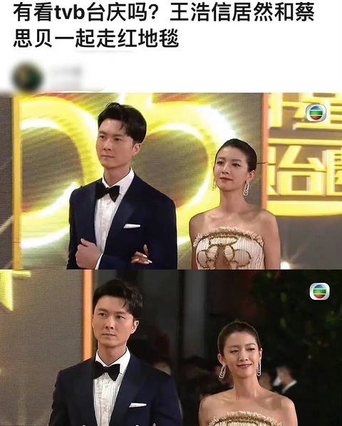 2021年TVB台庆王浩信蔡思贝挽手走红毯,老婆陈自瑶独美