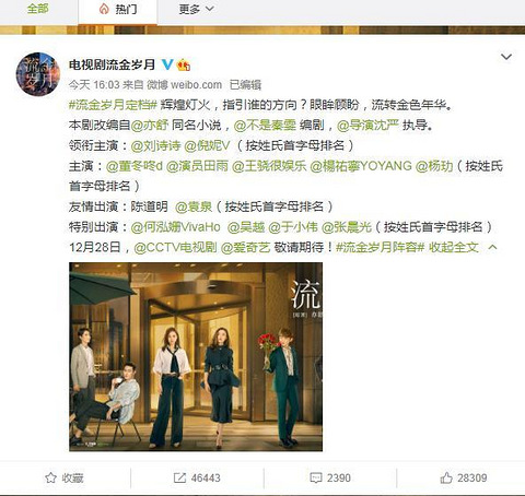【流金岁月】定档 由新丽传媒出品