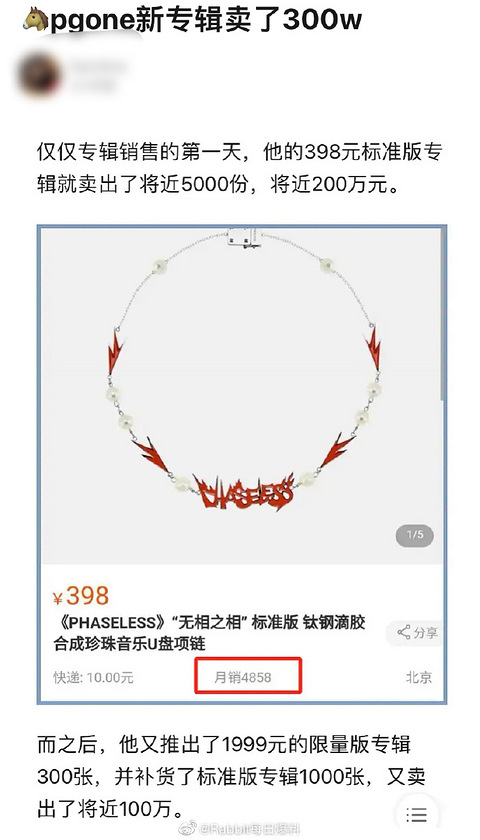 PGone新专辑卖了300万,fensi是真爱了……