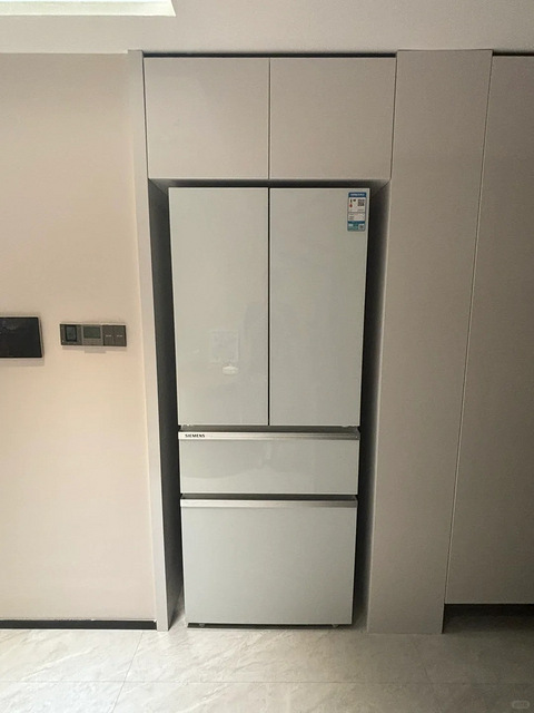 没法重做柜子,也不能换冰箱。多看看,看顺眼就好了吧,我家冰箱还没到,估计跟这个图差不多,大概有20~30cm的缝隙