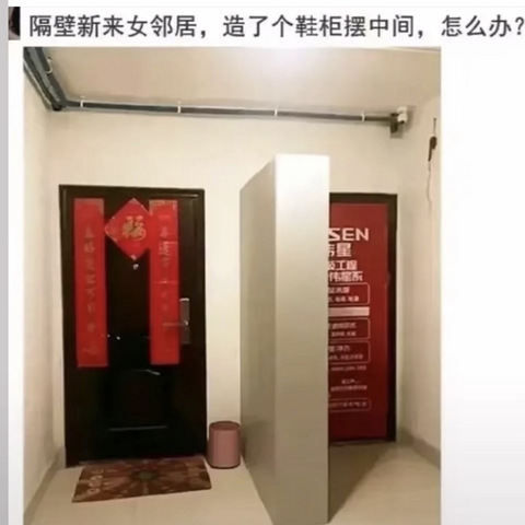 隔壁新来的女邻居,造了个鞋柜摆中间,怎么办?