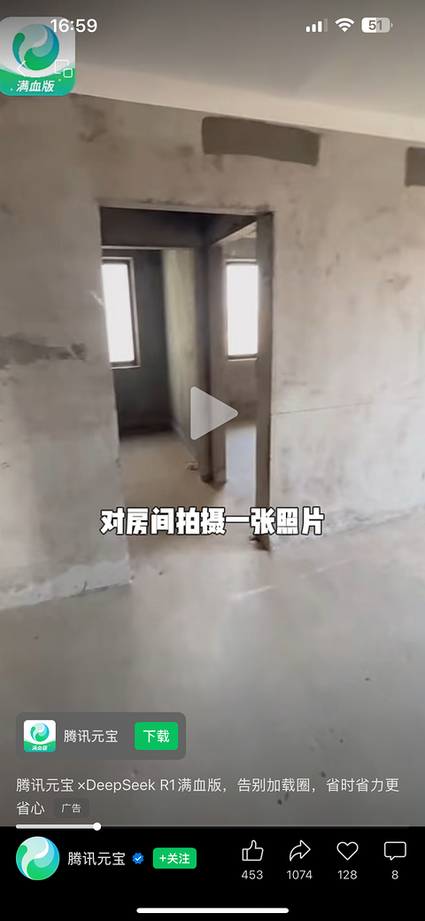 腾讯元宝的AI出图好牛,可以直接对着毛坯拍一张照片,然后输入需求,然后deepseek会自动加工需求内容,然后直接给出预算和效果图,好厉害的样子