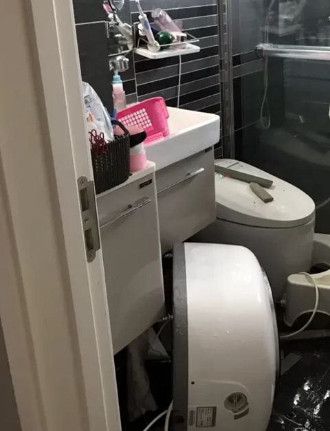 家里的壁挂式洗衣机把我吓哭了,从天而降,掉了下来。